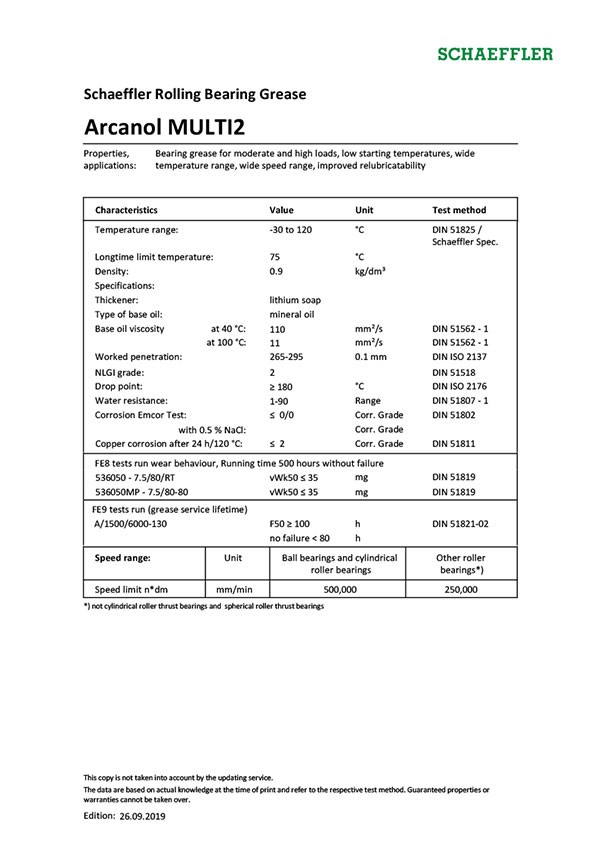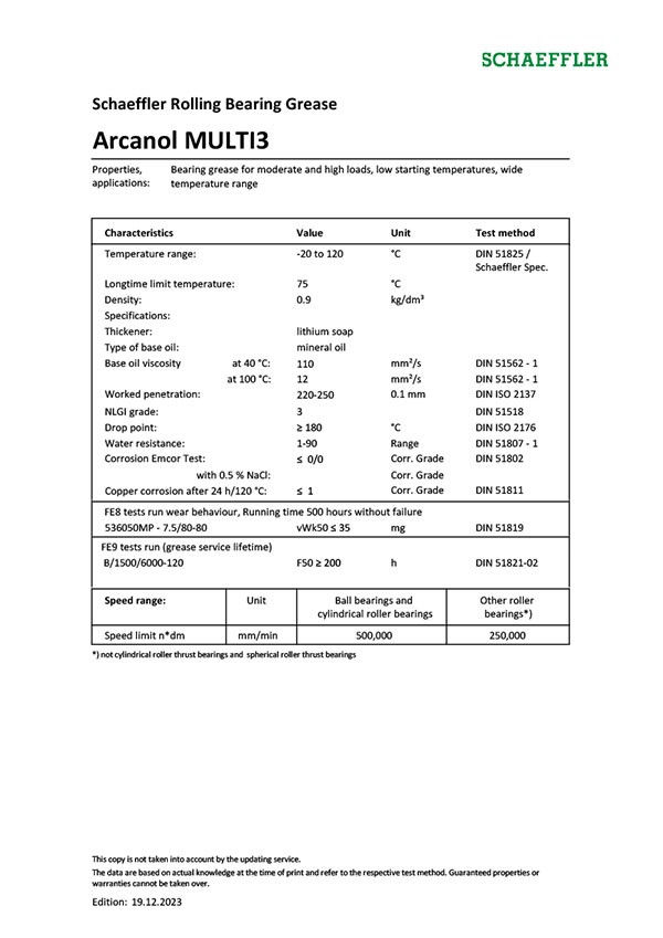 For decades now, Schaeffler has successfully been tackling the question of what lubricating grease offers the best solution for which application. Arcanol rolling bearing greases offer very good preconditions for favorable running behavior of bearings and a long life and high operational reliability of the bearing arrangement. The lubricant range is graduated such that almost all areas of application are covered. The areas of application of Arcanol greases were determined under widely differing operating conditions and with rolling bearings of all types by means of modern testing methods and testing systems.